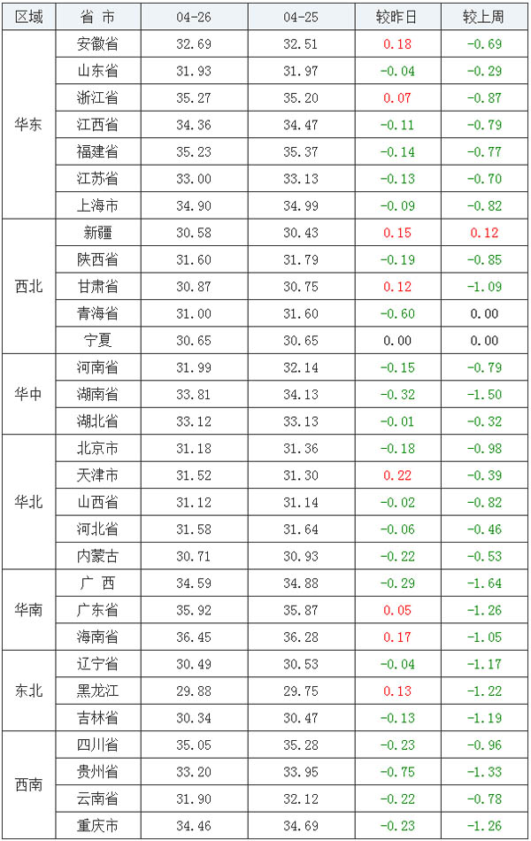 - 2020-04-26 全國(guó)各省市豬價(jià)漲跌對(duì)照參考表,一片綠色