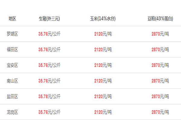 上圖為深圳市各區昨日(4月28日)的外三元生豬價格,僅供參考。